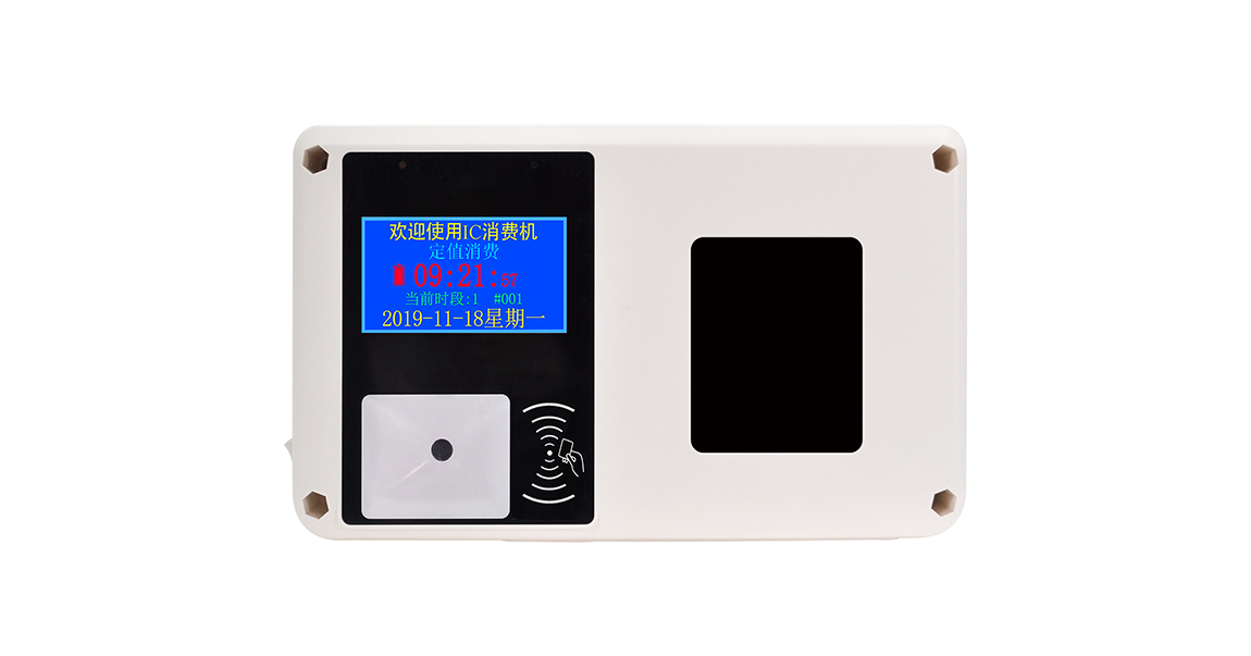 消費(fèi)機(jī)有兩個(gè)顯示面,一面顯示處面向就餐者,帶操作鍵盤及顯示處面向收銀員。